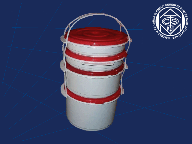 | Ételhordó 4-es | Cikkszám: 0140-9 , Méret: Ø 165 x 320 mm (4 x 1L), Kereskedelmi kiszerelés: 10 db/zsák |