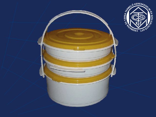 | Ételhordó 3-as | Cikkszám: 0130-0 , Méret: Ø 165 x 240 mm (3 x 1L), Kereskedelmi kiszerelés: 10 db/zsák |
