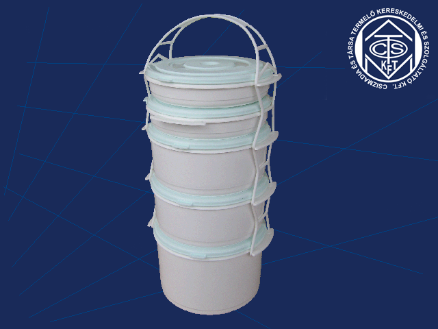 | Ételhordó 3+1-es | Cikkszám: 0131-7 , Méret: Ø 165 x 360 mm (3 x 1L+1 x 1,7L), Kereskedelmi kiszerelés: 10 db/zsák |