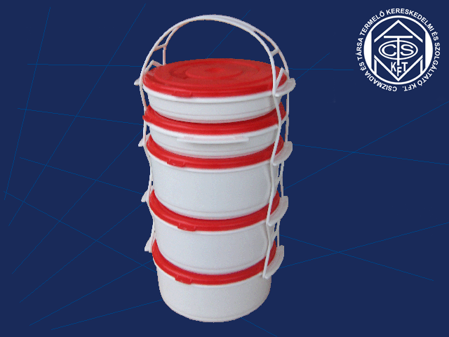| Ételhordó 3+1 EXTRA | Cikkszám: 0117-1 , Méret: Ø 165 x 360 mm (2 x 0,5L+2 x 1L+1 x 1,7L), Kereskedelmi kiszerelés: 10 db/zsák |
