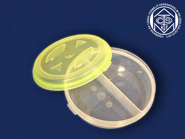 | Patyi osztott doboz | Cikkszám: 0304-5 , Méret: Ø 195 x 65 mm, (2 x 0,4 L) Kereskedelmi kiszerelés: 20 db/zsák |