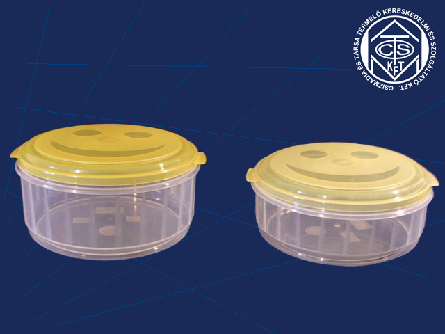 | Mosoly doboz 1,3 L | Cikkszám: 0234-5 , Méret: Ø 165 x 85 mm (1,3 L), Kereskedelmi kiszerelés: 20 db/zsák |